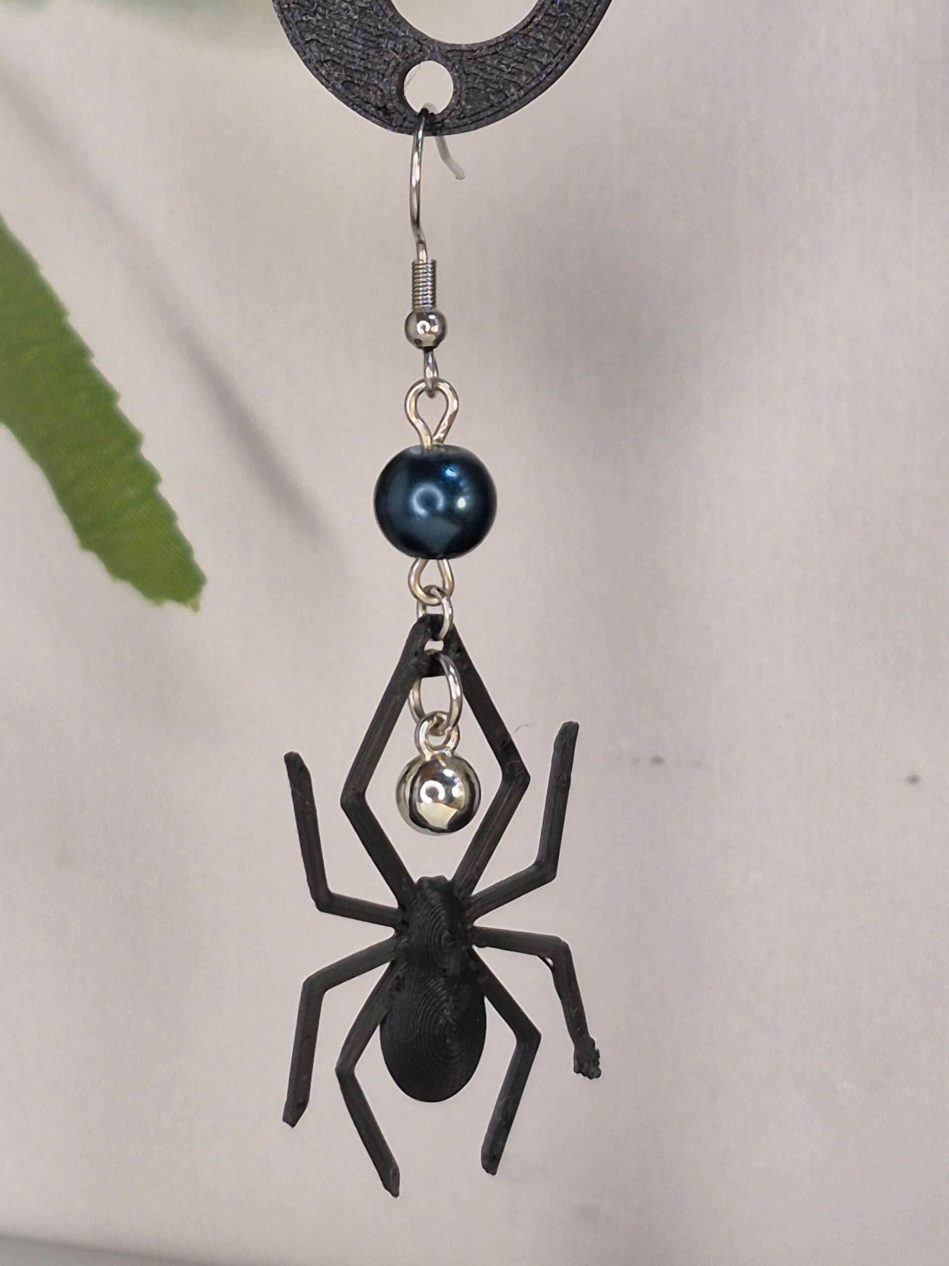 Aritos araña 3D con cuenta verde metálica. Estilo cute & creepy