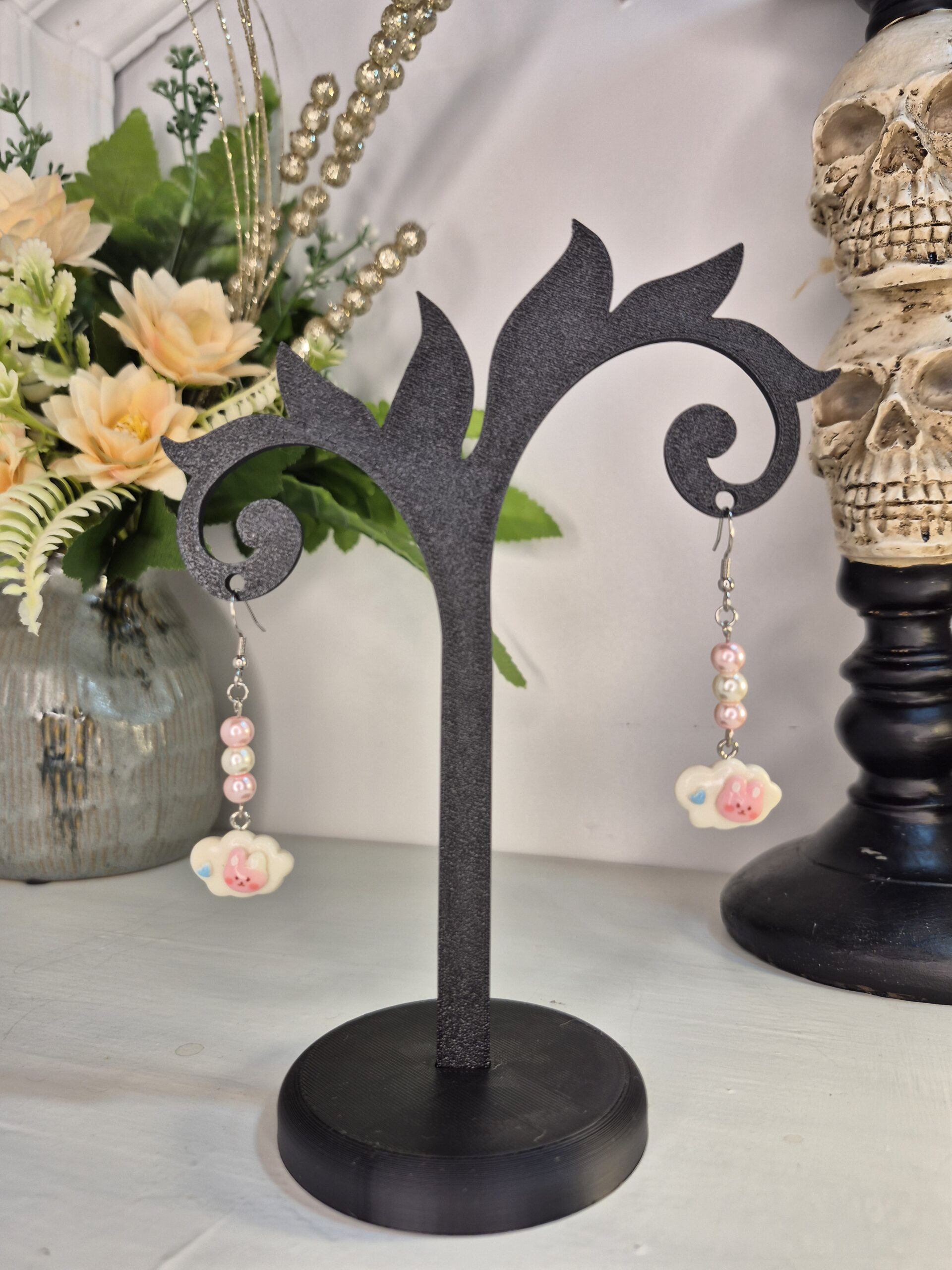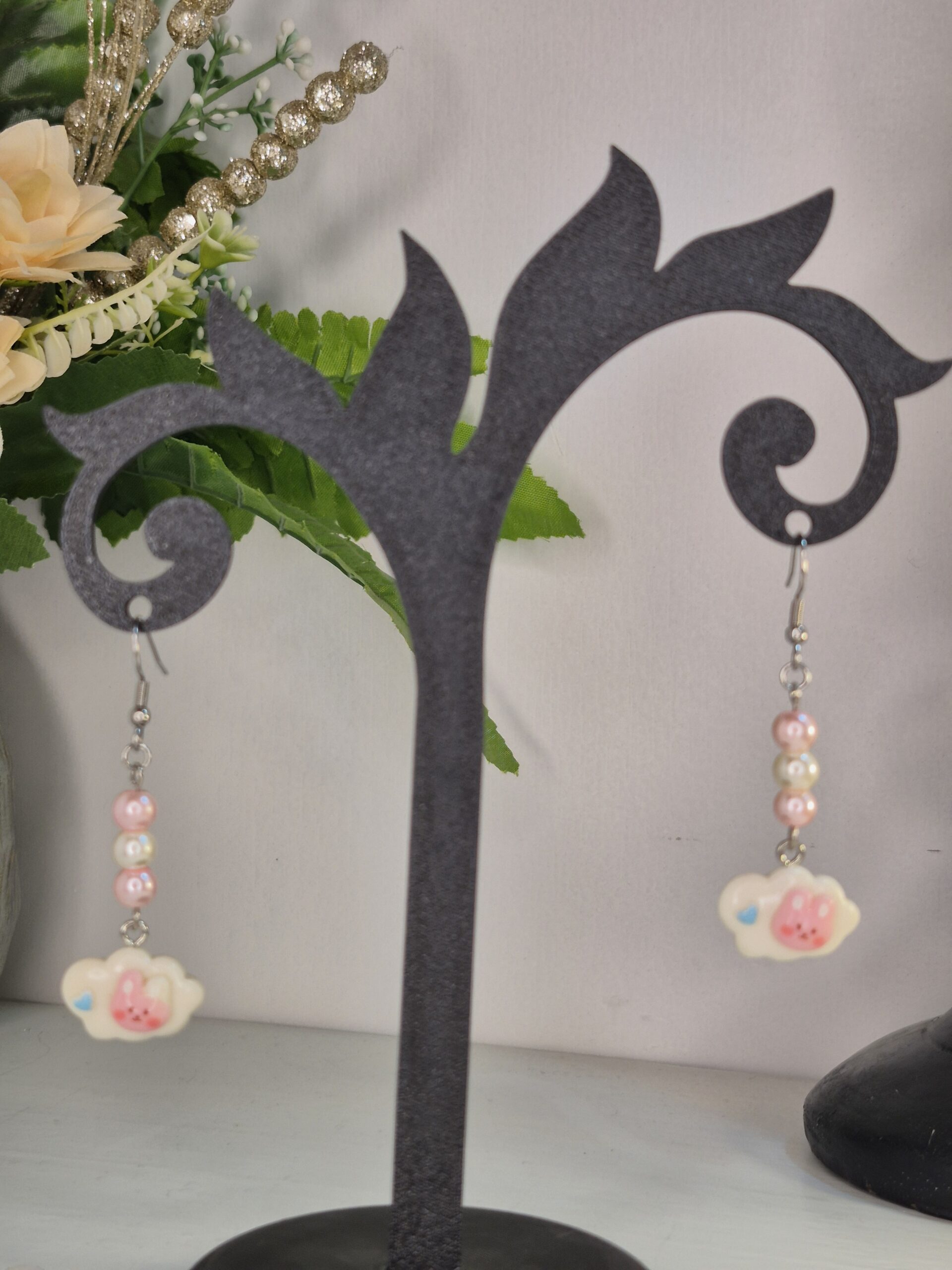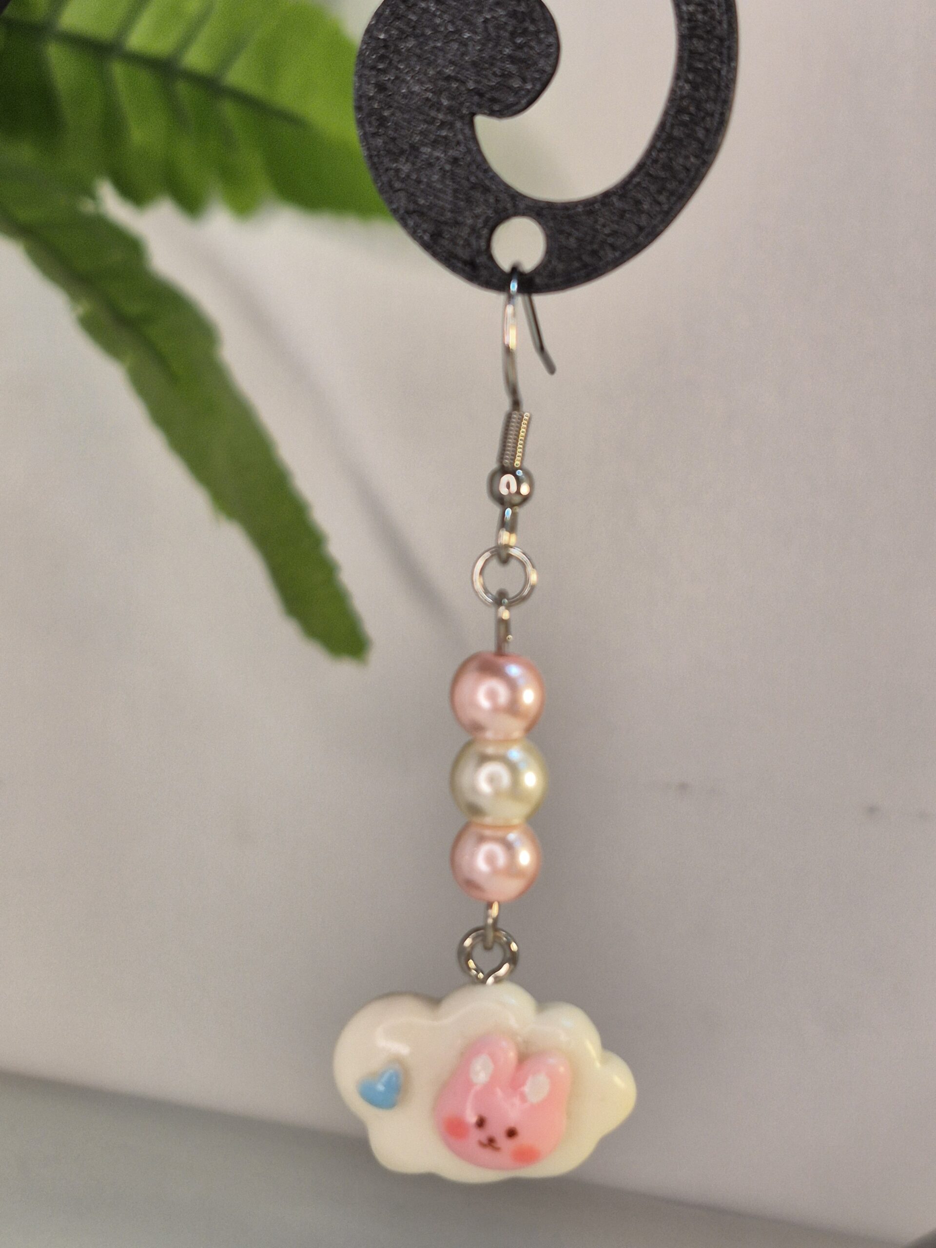 Aritos kawaii con perlitas pastel y nubecita con conejito ???