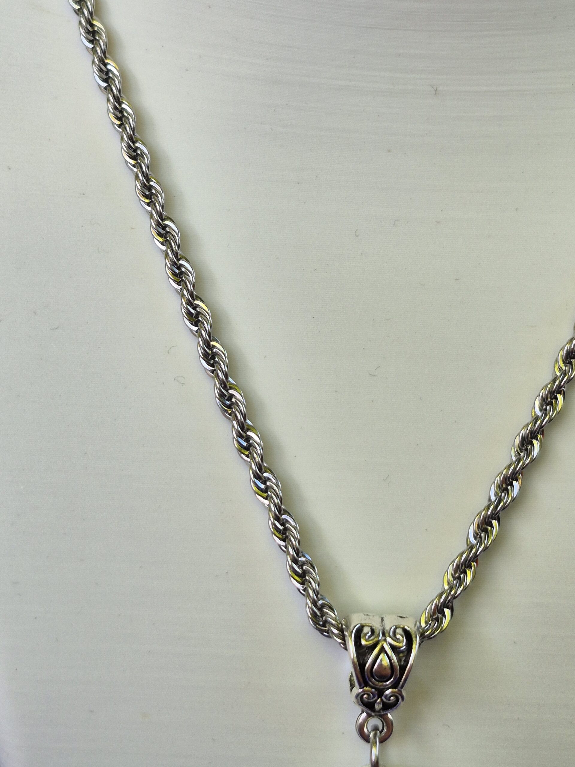 La cadena es de acero quirúrgico tipo tourbillon, reconocida por su resistencia, brillo duradero y comodidad sobre la piel, incluso para uso prolongado. Este estilo de cadena realza la elegancia del diseño sin perder su esencia dark.